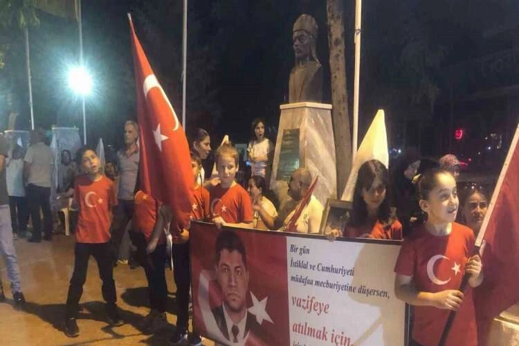 ADANA (İLKHABER)- Adana’nın Kozan ilçesinde Fetullahçı Terör Örgütü’nün (FETÖ) hain darbe kalkışmasının 7. yıl dönümünde Kozanlılar 15 Temmuz Şehitlerini Anma, Demokrasi ve Milli Birlik Günü etkinliğinde bir araya gelerek sokaklarda Türk bayrakları ile yürüdü.