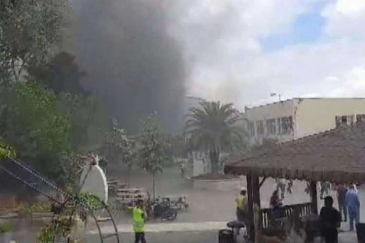İhbar üzerine olay çok sayıda polis ve itfaiye ekibi sevk edilirken, yemekhane dumanla doldu. Bunun üzerine içeride bulunan yaklaşık 30 öğrenci dışarı kaçtı. Yangın büyümeden itfaiye ekiplerinin müdahalesiyle söndürüldü. Ölen ya da yaralanan olmazken, yangının neden çıktığı araştırılıyor.