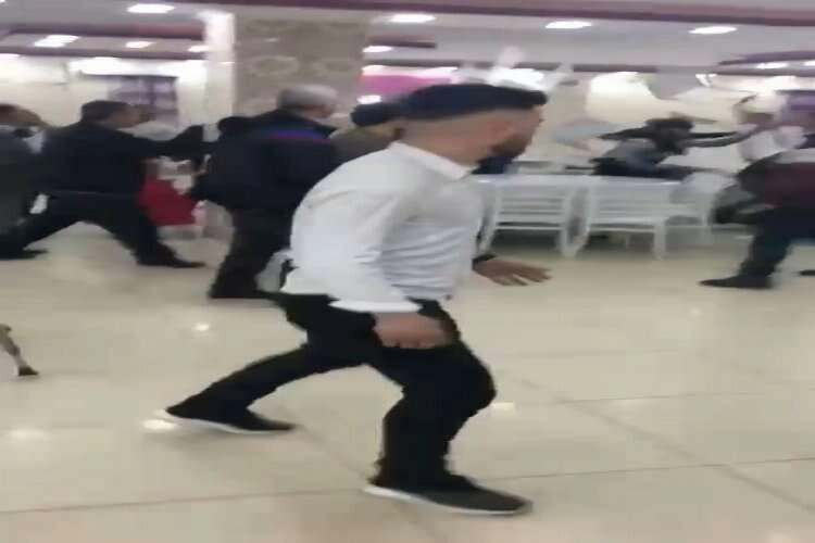 Bursa’da bir düğün salonuna alkollü gelen davetliden dolayı kavga çıktı. Kız ve erkek tarafının birbirine girdiği ve uzun süre devam eden kavgada masa ve sandalyeler havada uçuştu. Düğün salonunun içinde ve girişinde yaşananlar kameraya anbean yansıdı. Olay, merkez Yıldırım ilçesi Arabayatağı Mahallesi’nde bulunan bir düğün salonunda meydana geldi. Edilen bilgiye göre, düğüne alkollü gelen bir davetli içeride bulunan diğer davetlilerle tartışma yaşadı. Kısa sürede büyüyen tartışmaya kız ve erkek tarafları dahil olunca sözlü tartışma kavgaya dönüştü. Meydan muharebesine dönen kavgada sandalye ve masalar havada uçuşurken, ihbar üzerine gelen polis ekipleri tarafları birbirinden ayırdı. Düğünün iptal olmasına sebep olan kavga anı ise kameraya saniye saniye yansıdı.