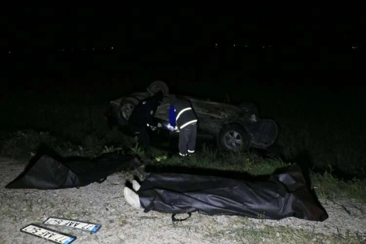 Adana’da elektrik direğine çarptıktan sonra takla atarak tarlaya devrilen otomobilde bulunan 1’i kadın 2 kişi öldü.