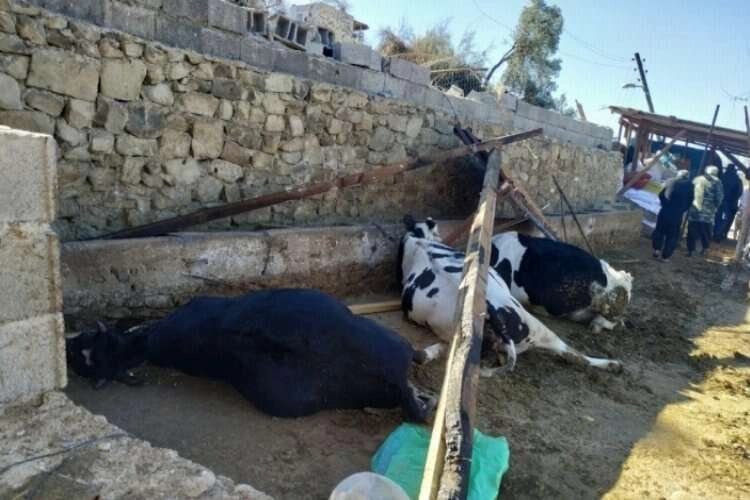 Adana’nın Kozan ilçesinde dün akşam etkili olan fırtınada, ahırın çatısı çökünce 3 inek telef oldu.