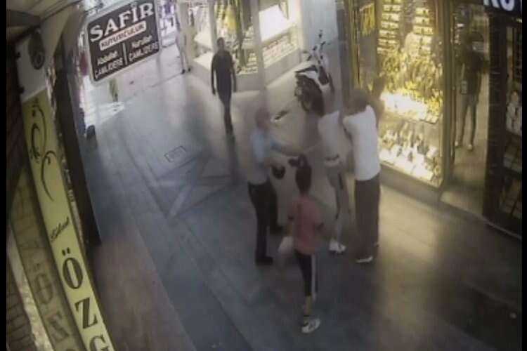 Bursa’nın İnegöl ilçesinde 2 gencin kavgasına esnaf süpürgeyle müdahale etti. Olay saat 09.00 sıralarında Cuma Mahallesi Kuyumcular Çarşısı’nda meydana geldi. Karşılıklı yürüyen iki genç arasında iddiaya göre yan bakma yüzünden tartışma çıktı. Tartışma bir anda kavgaya dönüştü. Gençler bir anda yumruk yumruğa kavga etmeye başladı. Kavga sırasında iş yerinin önünü süpüren bir esnaf, kavga eden gençleri elindeki süpürgeyle ayırdı. O anlar bir iş yerinin güvenlik kamerasına saniye saniye yansıdı.