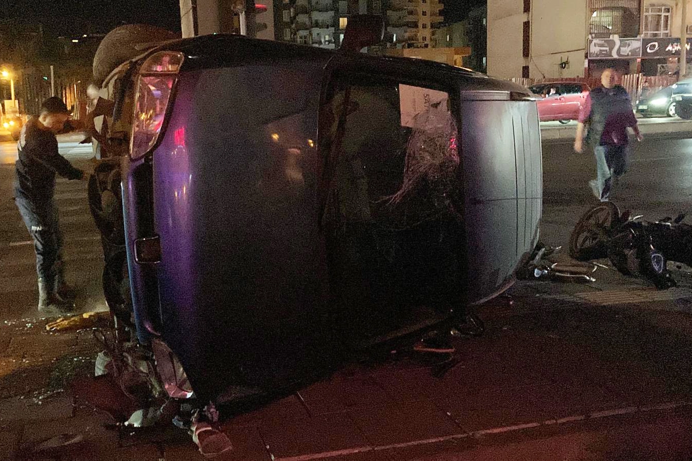 Mersin'in Erdemli ilçesinde kırmızı ışık ihlali yapan hafif ticari araç motosiklete çarparak devrildi, kazada 3 kişi yaralandı.