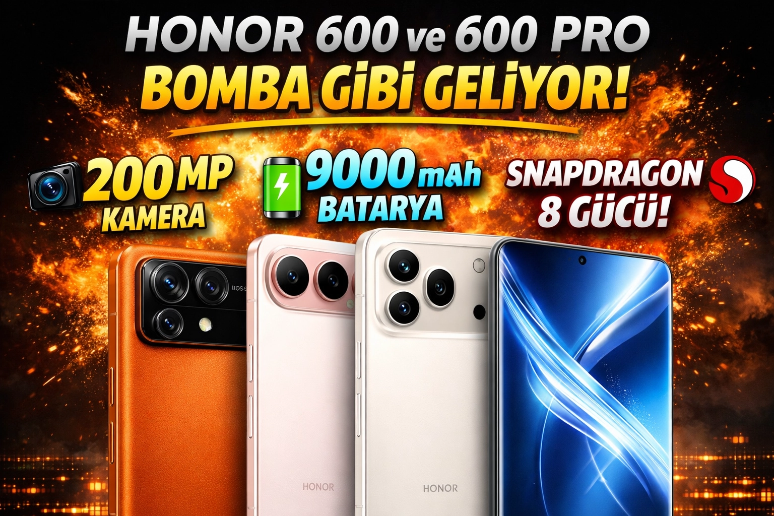 Snapdragon 8 serisi işlemci geliyorPerformans tarafında Honor 600 ve 600 Pro modellerinin Qualcomm Snapdragon 8 serisi işlemciyle gelmesi bekleniyor. Bu sayede cihazların hem günlük kullanımda hem de oyun performansında üst düzey bir deneyim sunacağı belirtiliyor.