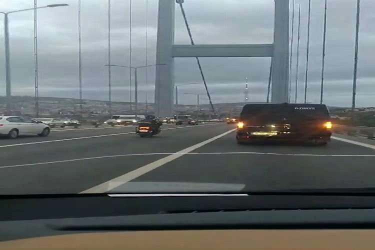 İstanbul’da şiddetli lodos hayatı olumsuz yönde etkilemeye devem ediyor. 15 Temmuz Şehitler Köprüsü’nde seyir halinde olan motokuryeler şiddetli rüzgar nedeniyle zor anlar yaşadı.