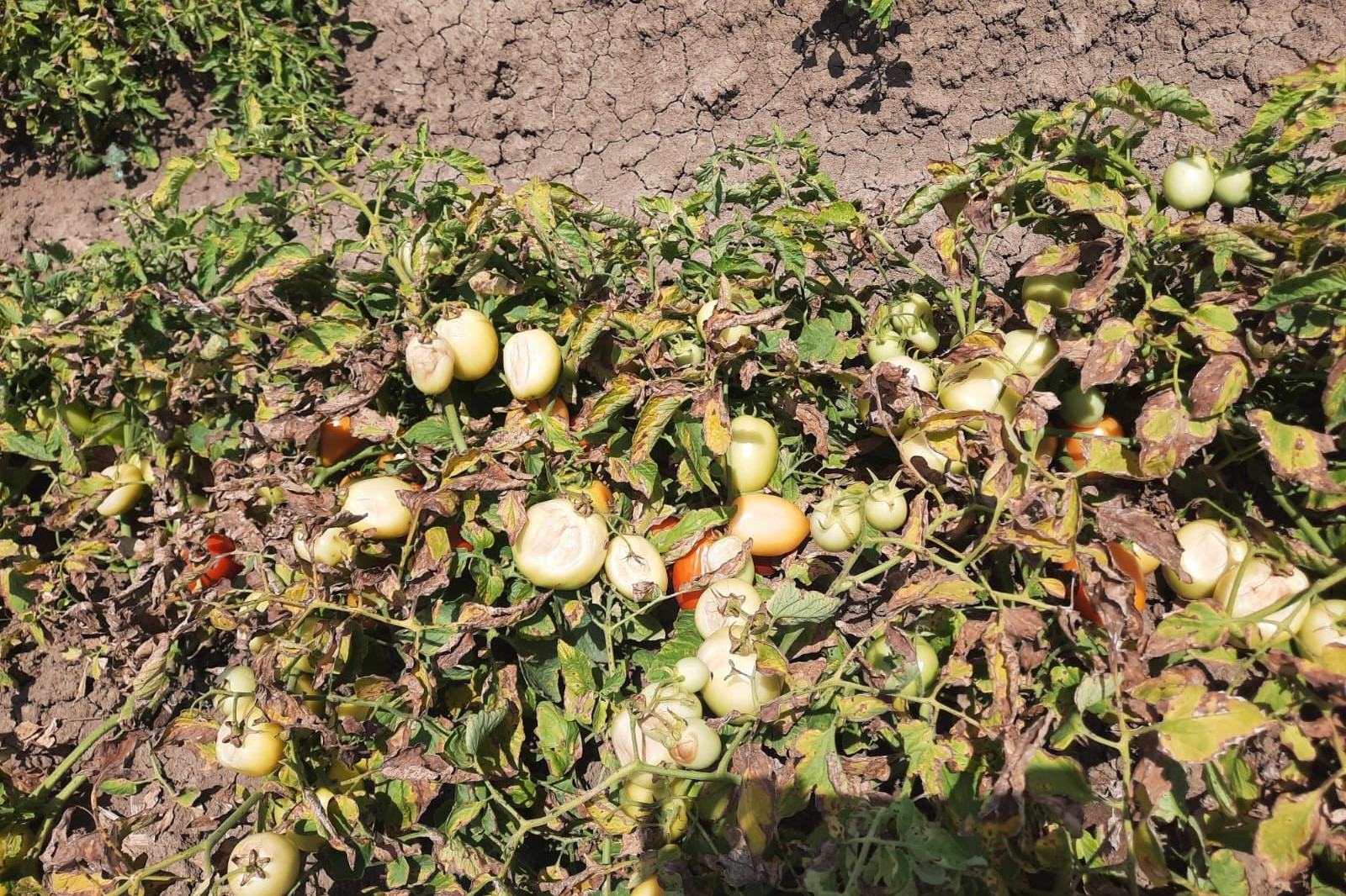 Domateslerde de güneş yanığı ve çürüme gibi problemler yaşanıyor. Çiftçiler, bu durumun ürün kaybına ve fiyat artışlarına neden olacağından endişe ediyor.