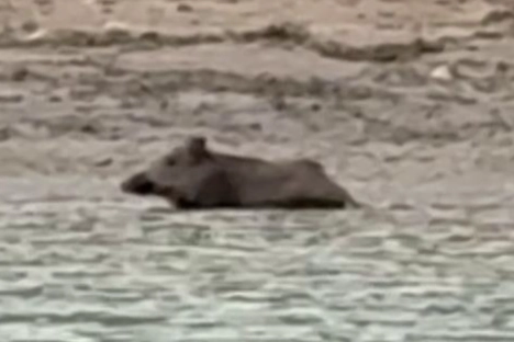 Türkiye'nin en sıcak illerinden Adana'da sıcaktan bunalan bir yaban domuzu, Seyhan Baraj Gölü'nde serinledi. O anlar cep telefonu kamerasına saniye saniye yansıdı.Meteoroloji Genel Müdürlüğü'nün aşırı sıcak uyarısı yaptığı Adana'da termometreler 40 dereceyi aştı. Hal böyle olunca Seyhan Baraj Gölü etrafındaki ormanlık arazide yaşayan yaban domuzları da serinlemek için göle indi. Bir domuzun gölde serinlediği anları teknesiyle gölde giden vatandaş cep telefonu kamerasıyla kaydetti. Bir süre suda duran yaban domuzu, daha sonra gölden ayrılıp ormanlık alana döndü.
