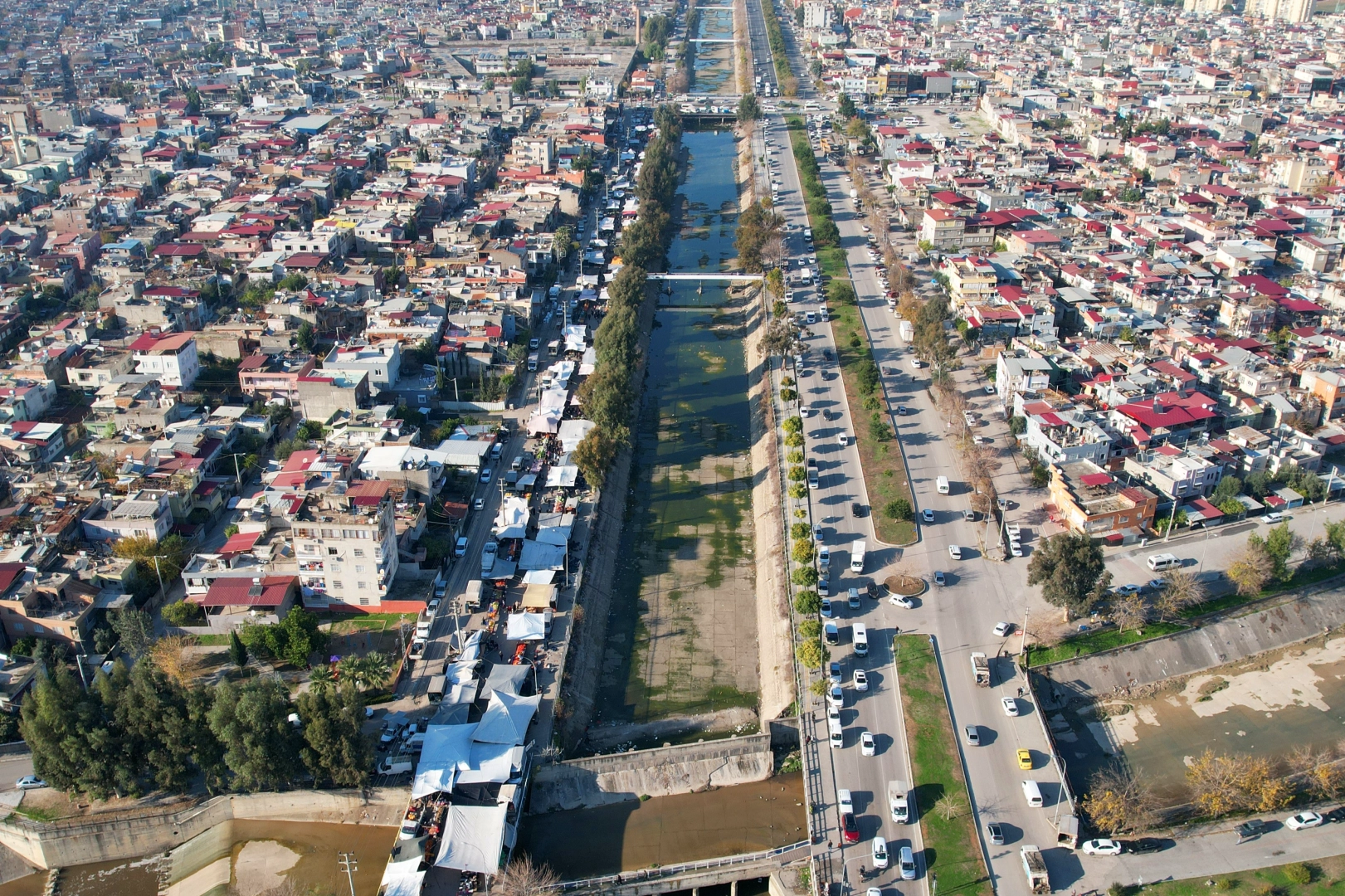 "Su Kesildi, Ganj Nehri'ne Döndü"Adana'nın sulama kanalları, zamanında şehre hayat veren, özellikle yaz aylarında büyük bir görsel zenginlik sunan, Venedik'in kanallarını hatırlatan yapılar olarak biliniyordu. Ancak son dönemde kuraklık nedeniyle suların çekilmesiyle kanalların içi adeta bir çöplüğe dönüştü. Poşetlerden ağaç dallarına, alkol şişelerinden eski kıyafetlere kadar pek çok atık, kanal boyunca birikmeye başladı. Bu durum, kanalın çevresinde yaşayan vatandaşlar tarafından Hindistan'ın kutsal Ganj Nehri'ne benzetildi.