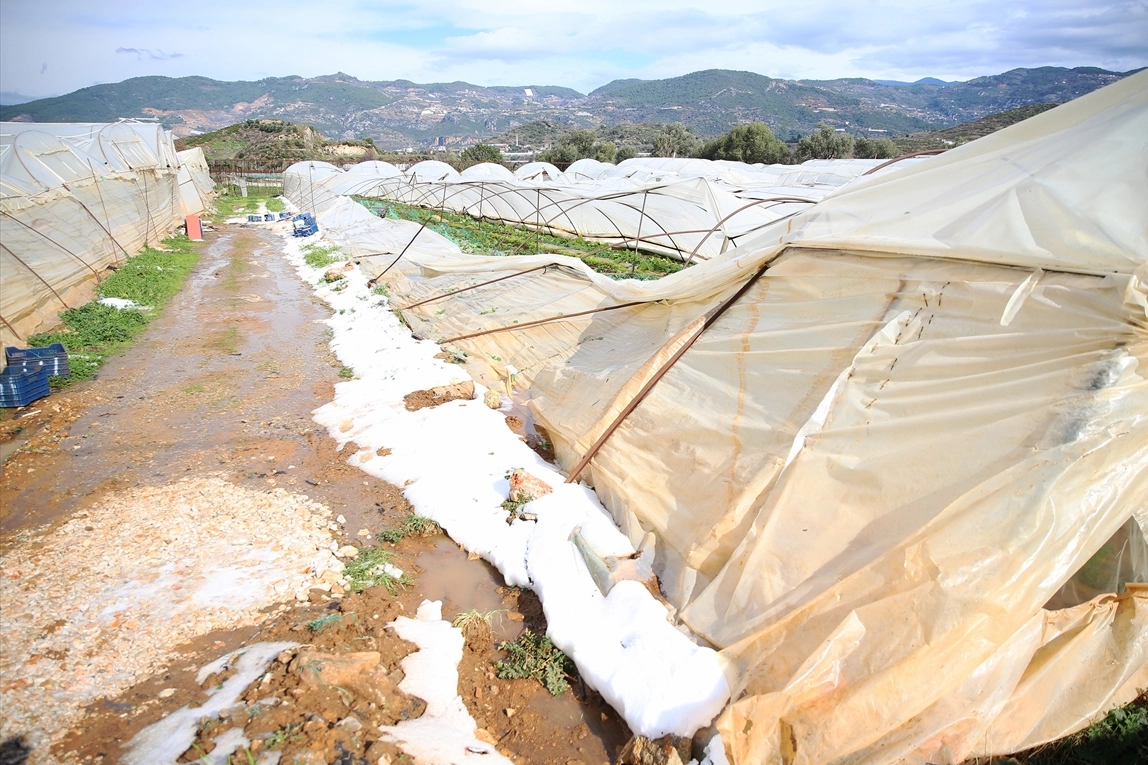 Göktepe, "Sebze ve tropikal meyvelerin bulunduğu seralarda dolu nedeniyle çökmeler, naylon yırtılmaları ve ürün zararları meydana gelmiş." dedi.