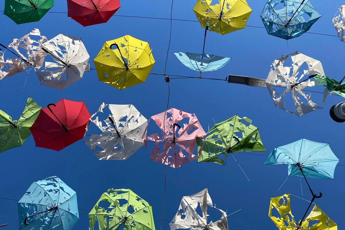 Antalya’da akşam saatlerinde etkili olan sağanak yağış ve dolu, Kaleiçi’nde bulunan ve kentin en çok fotoğraf çekilen noktalarından biri olan Şemsiyeli Sokak’ta zarara yol açtı. Turistlerin uğrak noktası olan rengarenk sokakta, gökyüzünü süsleyen yaklaşık 450 şemsiye dolu yağışı nedeniyle hasar gördü.