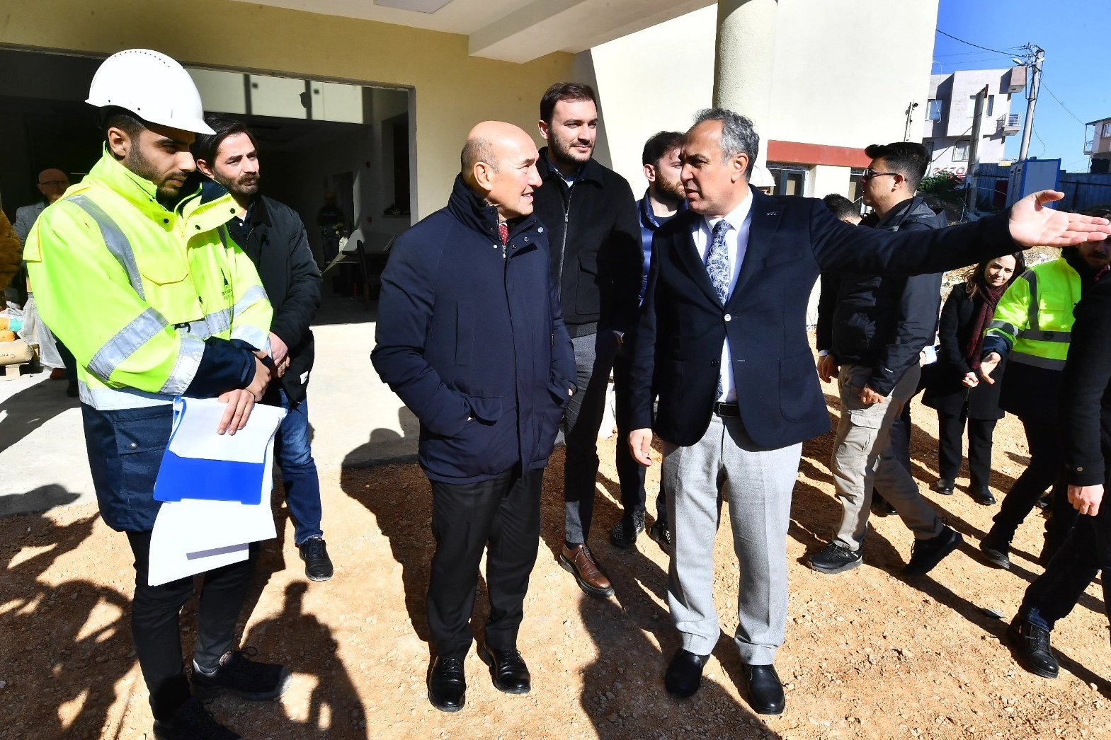 İzmir Büyükşehir Belediyesi’nin garantörlüğünde, yüzde yüz uzlaşıyla, yerinde ve kooperatifçilik modeliyle yürütülen kentsel dönüşüm çalışmaları hız kesmeden devam ediyor. İzmir Büyükşehir Belediyesi, Karabağlar’daki Uzundere Kentsel Dönüşüm Alanı’nda inşası devam eden belediye hizmet binasında sona yaklaştı. İzmir Büyükşehir Belediye Başkanı Tunç Soyer, tesisteki son rötuşları yerinde inceledi. Başkan Soyer’e Büyükşehir Belediyesi Genel Sekreter Yardımcıları Suphi Şahin ve Ertuğrul Tugay ile belediye bürokratları da eşlik etti. İnşaatın yüzde 90’ının tamamlandığı ve binanın Mart ayında hizmete açılacağını ifade eden Başkan Soyer, “Kentsel dönüşümle sadece binaları dönüştürmüyoruz. Yeşil alanları ve sosyal donatı birimleriyle sağlıklı, güvenli, yaşanabilir çevreler oluşturuyoruz. Yaklaşık 3 dönüm alan içerisinde bulunan binamız bölgenin ihtiyaçlarını göz önünde bulundurarak işlevselleştiriliyor. Toplum merkezi modeliyle faaliyetleri ve çalışmaları planlanan hizmet binası bölgenin çocukları, gençleri, kadınları ve engellilerinin de faydalanacağı kütüphane, kreş, Masal Evi, meslek fabrikası kursları ve tüm yurttaşların katılacağı atölyeler, bunun yanı sıra sosyal hizmet dayanışma noktalarıyla hizmet verecek. Yaklaşık 35 milyon liralık yatırımla hayata geçirdiğimiz üç katlı binamız Mart ayında açılacak” ifadelerine yer verdi.