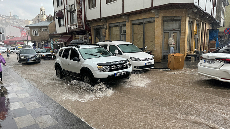 Bayburt'ta etkili olan sağanak nedeniyle bazı cadde ve sokakları su bastı.Kentte yarım saat etkili olan yağış nedeniyle bazı cadde ve sokaklar suyla kaplandı.Belediye ekipleri ve vatandaşlar, tıkanan rögar ve su kanallarını açmaya çalıştı. Sağanak nedeniyle bazı iş yerlerini su basarken, iş yeri sahipleri ve vatandaşlar, dükkânlarda temizlik yaptı.