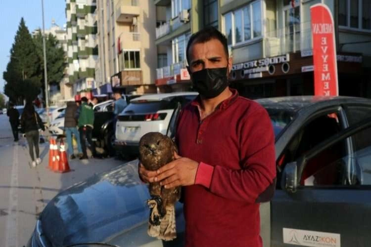 Eren Yarat, Seyhan ilçesine bağlı Karayusuflu Mahallesi’nde otomobiliyle ilerlerken yol kenarında bir şahin olduğunu fark etti. Hemen aracını durdurup şahinin yanına giden Eren Yarat, şahinin baygın olduğunu görünce hemen korkup uçmasın diye ayaklarını iple bağlayıp aracının ön koltuğuna aldı.