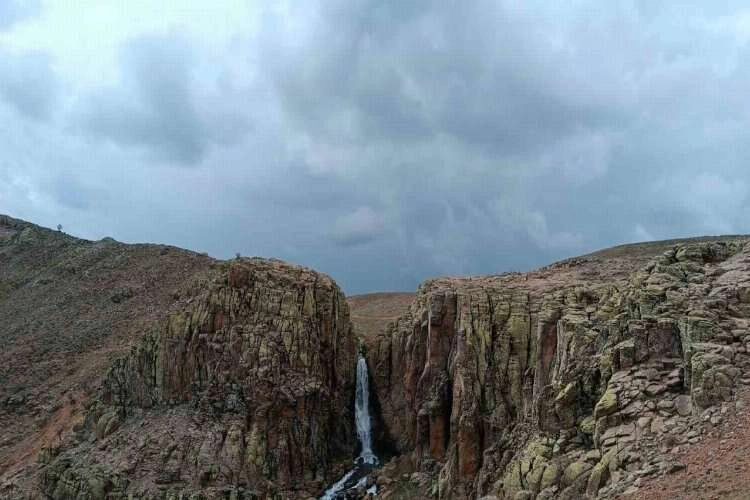 Bingöl’de yaz aylarında kuruyan, kış aylarında soğuklar nedeniyle donan 50 metrelik Çır şelalesi, bahar aylarında karların erimesiyle coştu.