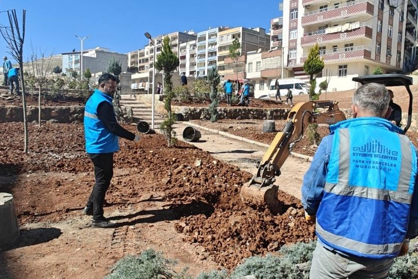Eyyübiye Belediyesi Çevre Koruma ve Kontrol Müdürlüğü ekipleri ilçenin dört bir yanında yeni park inşaatlarına devam ederken, mevcut parklarda da ağaç bakımı, yeni fidan ve bitki dikimi, çimlendirme gibi çalışmalarına hız verdi. Kış ayları boyunca parklarda yapısal peyzaj, açık hava mobilyaları ve oyun gruplarının bakım, onarım ve yenileme çalışmalarını gerçekleştiren ekipler, bahar aylarında ilçe halkının kullanımına sunulmak üzere yeşillendirme faaliyetlerini artırdı. Bir yandan yeni yeşil alanlar oluşturan Eyyübiye Belediyesi, diğer yandan da eski hava alanı mevkiinde yapımı devam eden Çevre Koruma ve Kontrol Müdürlüğü hizmet sahasında park mobilyaları üretmeye devam ediyor. Aynı sahada üretime başlayacak olan fidanlık ile Eyyübiye’nin genelindeki parkların fidan ve bitki ihtiyaçları da buradan karşılanacak.
