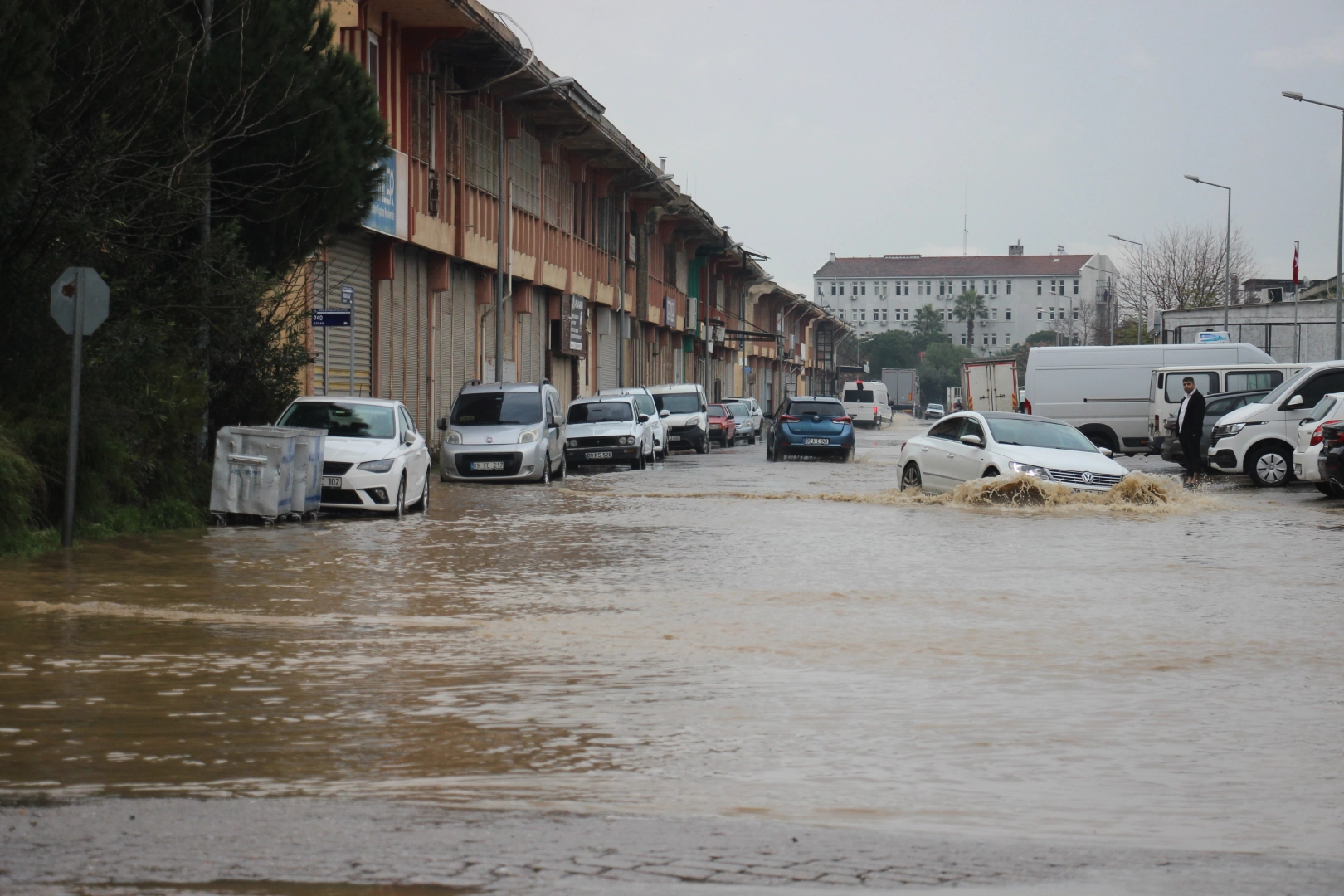 Aydın genelinde etkili olan sağanak yağış hayatı olumsuz etkiledi. Yağmura hazırlıksız yakalanan vatandaşlar saçak altlarına sığınmaya çalışırken, oluşan su birikintileriyle göle dönen yollarda da sürücüler zor anlar yaşadı. Ata Mahallesi’ndeki Gıdacılar Çarşısı’nda da yollar adeta göle döndü, bazı işyerlerine su bastı. İlerlemekte güçlük çeken otomobillerden bazıları ise yolda kaldı, araçların plakaları düştü. Gıdacılar Çarşısı yolunu kullanan vatandaşlardan Ali Aydın ise aracının plakasının düştüğünü fark etti. Ayağına çizmeleri giyen Aydın, göle dönen yolda dakikalarca aracının plakasını arasa da başarılı olamadı. Aydın düşen plakayı bulmayınca aracına binerek evinin yolunu tuttu.