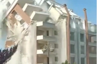 Hatay'ın Kırıkhan ilçesinde, 9 katlı binanın iş makinesinin dokunuşuyla kontrollü olarak yıkıldığı anlar kameraya yansıdı.Kahramanmaraş merkezli depremlerde ağır hasar alan Hatay'da mahkeme süreci sona eren binaların yıkım ve enkaz kaldırma çalışmaları aralıksız sürüyor. Kırıkhan ilçesi Mimar Sinan Mahallesi'nde bulunan 9 katlı bina, iş makinesiyle kontrollü olarak yerle bir oldu. Binanın yıkıldığı anlar ise kameraya yansıdı. 9 katlı binanın yıkımı esnasında herhangi bir olumsuzluk yaşanmadı.