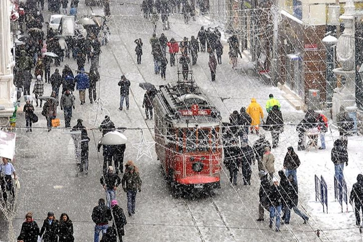 TAKSİM VE İSTİKLAL’DE KARTPOSTALLIK GÖRÜNTÜLERKar yağışı İstanbul’un simge noktalarında da etkisini gösterdi. Taksim Meydanı ve İstiklal Caddesi’nde yağan kar, ortaya kartpostallık görüntüler çıkardı. Havadan çekilen görüntülerde Taksim Camii’nin kubbeleri ve çevredeki binaların çatılarının beyaz örtüyle kaplandığı görüldü. Yerli ve yabancı turistlerin kar altında fotoğraf çektirdiği anlar dikkat çekti.