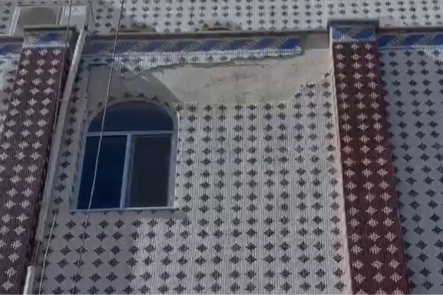 Mersin'in Erdemli ilçesinde kuvvetli rüzgar nedeniyle cami duvarının dış kaplama taşları ile sıvası park halindeki otomobilin üzerine düştü. Sürücünün aracın içerisinde olduğu ve bir kişinin araçtan inmesinden kısa bir süre sonra parçaların düşme anları güvenlik kamerasına yansıdı.