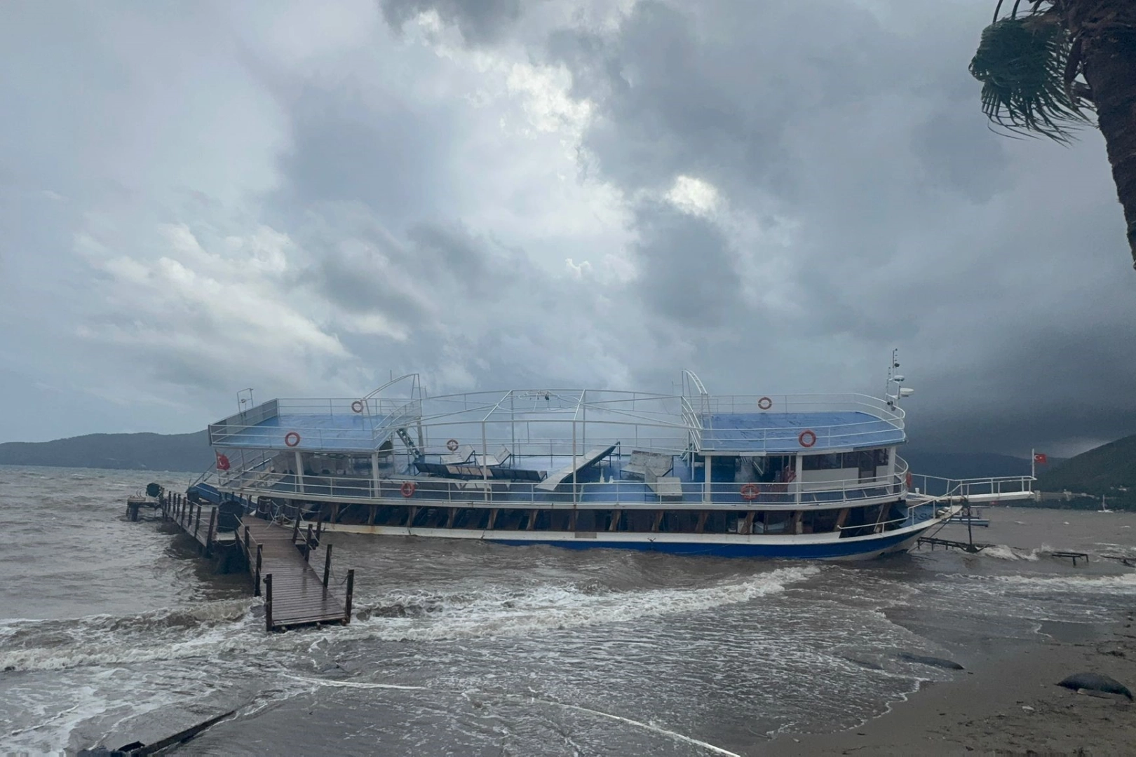 Muğla'nın Marmaris ilçesinde dün gece başlayan sağanak yağış ve fırtına sabah saatlerinden itibaren etkisini artırırken, denizde de etkisini gösteren fırtına sebebiyle bazı tekneler de sürüklendi. Sabah saatlerinde Türk bayraklı 3 gezi teknesi Hisarönü Körfezi İnbükü Koyu'nda karaya oturmuştu. Ağır hava şartları nedeniyle sürüklenerek karaya oturan Granitsa, Kastabos ve Wiseone isimli 3 gezinti teknesinin ardından, Uzunyalı mevkiinde de 1 gezi teknesi iskeleye çarparak karaya oturdu. Olayda herhangi bir can kaybı yaşanmazken, kısa sürede bölgeye gelen Sahil Güvenlik ekipleri çalışma başlattı. Yapılan incelemelerin ardından teknenin kurtarılması için başlatılan çalışmalar devam ediyor. Marmaris'te her yıl benzer görüntülerin yaşandığını ifade eden Siteler Mahallesi Muhtarı Gülizar Pekpak; "Sahil Güvenlik geldi, hemen müdahale ettiler. Muğla AFAD aradı hemen. Bu yaşanan durum bence bir ihmal. Çünkü bu her sene olan bir şey. Marmaris'in havası belli. Turuncu alarm verildi. Niye yapıyorsunuz ki. Bu bilinçsizliktir" dedi.