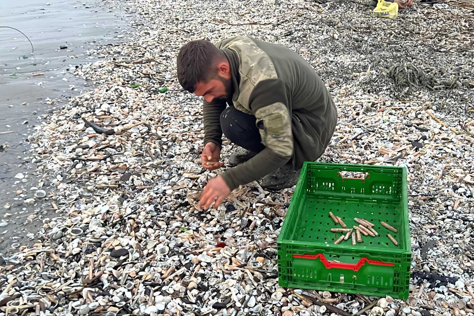"FIRTINANIN VERDİĞİ BİR NİMET"Sahilde kargı midyesi toplayan balıkçı Eyüp Ensariongün,"Fırtınadan dolayı sahile vurdu, şimdi bunları topluyoruz. Avcılıkta kullanacağız. Normalde para verip aldığımız şeyler bunlar. Her zaman bulunan şeyler değil. Fırtınanın verdiği bir nimet diyelim. Bu ürün Japonya taraflarında yenilen bir şey ama bu taraflarda yiyen var mı bilmiyorum. Buradan topladığımız yenilecek bir şey değil, çamurun içinden çıktığı için hastalık üretebilir. Ama normalde pişirilip yendiğini biliyoruz" dedi.