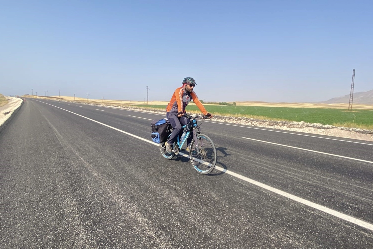 Mersinli bisikletçi, Van Gölü’ne dikkat çekmek için çevresinde pedal çevirdi.