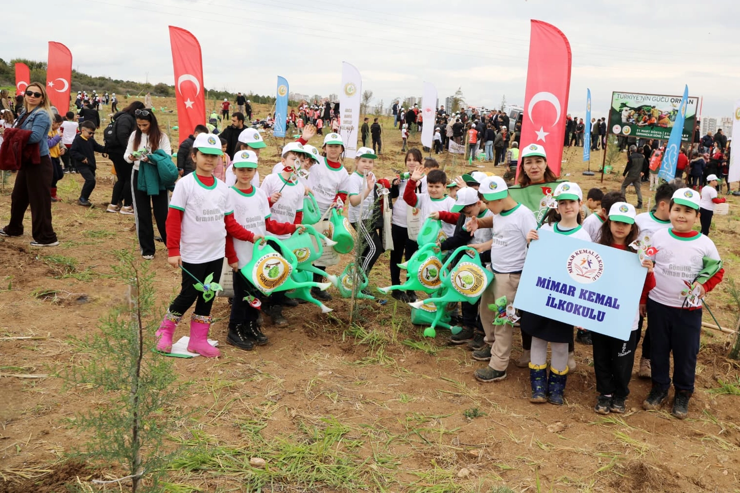 Dünya Ormancılık Günü ve Orman Haftası etkinlikleri çerçevesinde Adana’da geniş katılımlı bir program gerçekleştirildi. Adana Valisi Mustafa Yavuz ve kent protokolünün katılımıyla Alparslan Türkeş Bilim ve Teknoloji Üniversitesi Kampüsü’nde düzenlenen törende, geleceğin teminatı olan öğrenciler fidanları toprakla buluşturdu. Adana Valiliği ve Orman Bölge Müdürlüğü koordinasyonunda gerçekleştirilen etkinliğe Seyhan Mimar Kemal İlkokulu da yoğun katılım sağladı. Okul Müdür Yardımcısı İbrahim Köksal, öğretmenler Hüsniye Aydemir ve Recep Köse, veliler ve 45 öğrencinin yer aldığı etkinlikte, çocuklar büyük bir heyecan yaşadı.