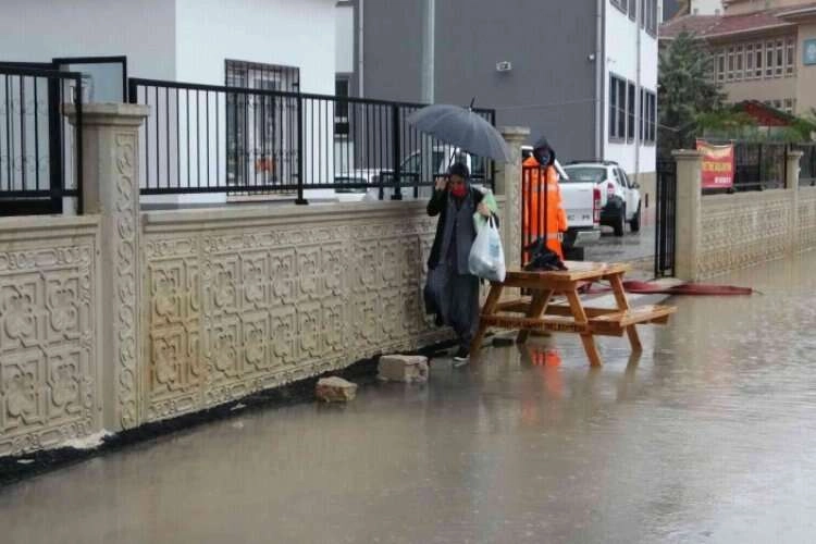 Adana’da bir ilkokulun sokağını su basınca öğrenciler ve veliler okula girip çıkarken zor anlar yaşadı.
