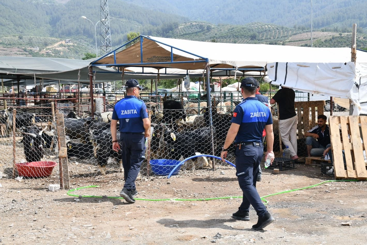 Osmaniye'de, yaklaşan Kurban Bayramı öncesi ekipler hayvan pazarlarında denetimlerini arttırdı. Kurban Bayramı'na sayılı günler kala vatandaşlar, kurbanlık hayvan arayışını sürdürüyor. Bayramı öncesi vatandaşların sağlıklı ve güvenli bir şekilde kurbanlık seçimini yapabilmesi amacıyla Tarım ve Orman İl Müdürlüğü Hayvan Sağlığı, Yetiştiriciliği ve Su Ürünleri Şubesi ile Belediye Zabıta ekipleri, Fakıuşağı Mahallesi Dereobası Köyü yolu üzerine kurulan kurban pazarında kapsamlı kontroller gerçekleştirdi. Yapılan denetimlerde, kurbanlık hayvanların küpe, pasaport ve sevk belgeleri kontrol edilerek hayvanların sağlık durumları yerinde incelendi. Aynı zamanda pazarda bulunan üretici ve satıcılara da hayvan refahı, hijyen kuralları ve kurbanlık hayvanlara yönelik yasal düzenlemeler hakkında bilgilendirmelerde bulunuldu. Ekipler, hayvan satıcıları ile vatandaşlara da dolandırıcılık ve farklı konularda bilgilendirmeler de yaptı.