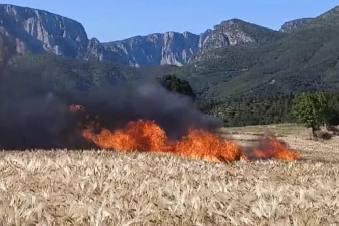 Olayda can kaybı ya da yaralanma yaşanmazken, 11 dönüm buğday tarlasının da tamamen yandığı öğrenildi. Yangının çıkış nedeniyle ilgili inceleme başlatıldı.
