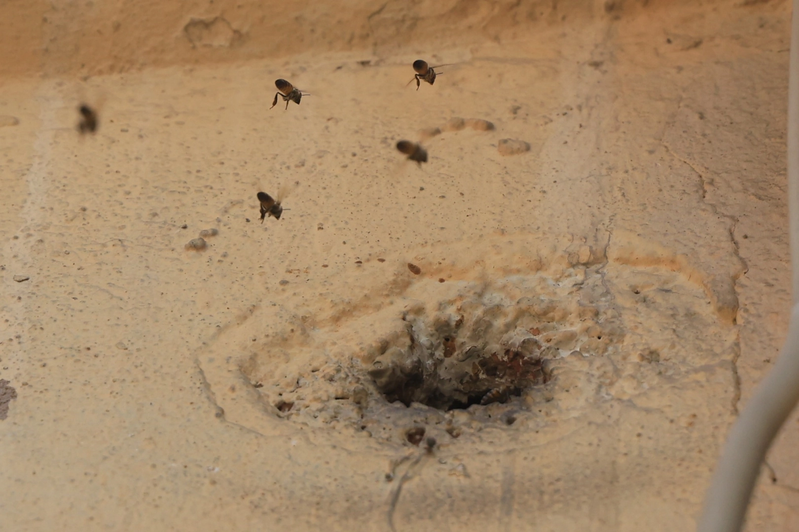 Hatay'da 2 katlı binanın giriş katındaki duvarda bulunan delikten içeri girerek yuva yapan bal arılarını, yuvaya taş atan çocuklar kızdırdı. Kısa süreliğine kızgınlaşan ve kalabalık şekilde uçuşan arılar mahalleliyi tedirgin etti.