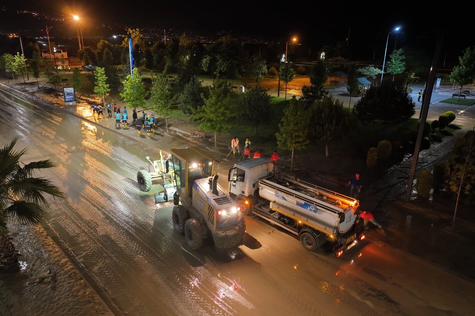 Trabzon Büyükşehir Belediyesi ekipleri, yağışların etkisini yitirmesiyle birlikte sahaya çıkarak temizlik ve müdahale çalışmalarına başladı. Özellikle 2 Nolu Beşirli ve Pazarkapı mahallelerinde gece boyu yoğun temizlik çalışmaları yürütülüyor.