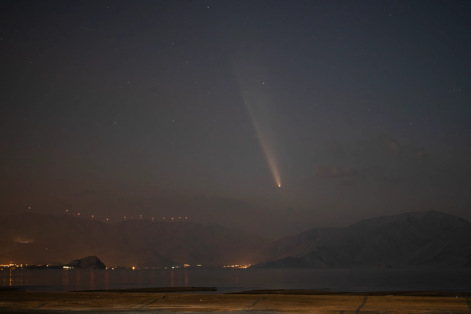 Van'da doğa fotoğrafçısı Reşit Öner, Tsuchinshan-ATLAS kuyruklu yıldızını, Van Gölü Havzası'nın etkileyici manzarasında fotoğrafladı. Yüzyılın parlak kuyruklu yılı olarak kabul edilen bu doğa olayı, 80 bin yıl sonra dünyaya en yakın geçişini yaparak, Türkiye'den de çıplak gözle izlenebildi.