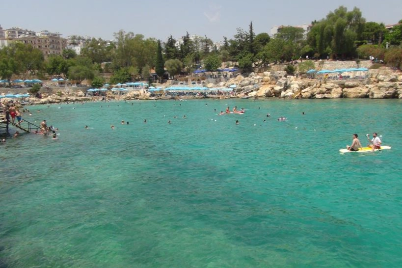 Türkiye'nin önemli turizm merkezlerinden Mersin'in Silifke ilçesinde, Toros Dağları'ndan gelen yer altı kaynak sularının Akdeniz'in tuzlu sularıyla karıştığı Yapraklı Koy, yerli ve yabancı tatilcileri kendine çekiyor.