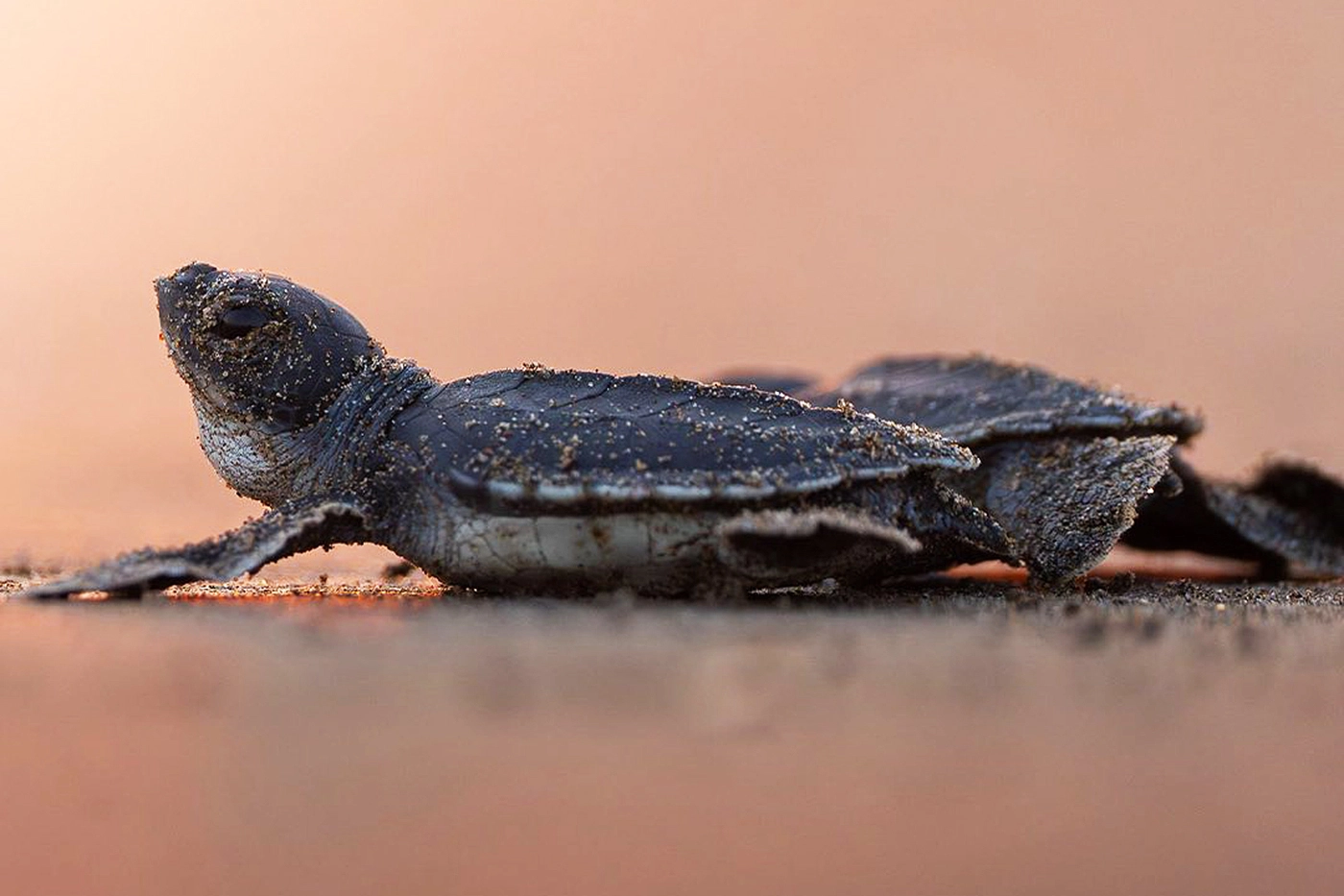WWF-Türkiye Yaban Hayatı Uzmanı Mehmet Tural da, çalışmalara katılarak yuvalardan çıkan minik kaplumbağaların kumsaldan denize doğru zorlu yolculuğunu fotoğrafladı.
