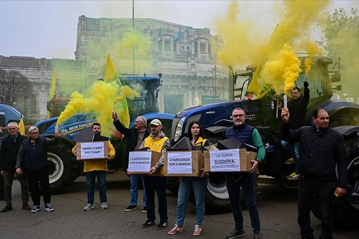 Milano'daki Lombardiya Bölgesel Yönetimi'nin genel merkezinin önüne 30 kadar traktörle gelen yaklaşık bin çiftçi, burada protestoda bulundu.