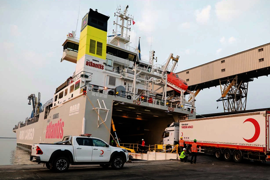 Türk Kızılay'ın sosyal medya hesabından yapılan paylaşıma göre, Mısır açıklarında yakıt ikmali yaptıktan sonra El-Ariş Limanı'na yanaşan gemideki insani yardım malzemelerinin indirilmesine başlandı.