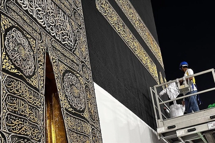 Suudi Arabistan’da yetkililer, hac sezonu hazırlıkları kapsamında Kabe'nin örtüsünün alt kısmını 3 metre yukarı kaldırdı.