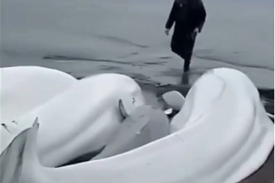 Japonya’da Balina AlarmıTsunami sonrası Japonya’nın Chiba eyaletine bağlı Tateyama kentinde kıyıya çok sayıda balina vurdu. Karaya çıkan balinalara yerel ekipler tarafından su desteği sağlanarak yaşamları için müdahalede bulunuldu.