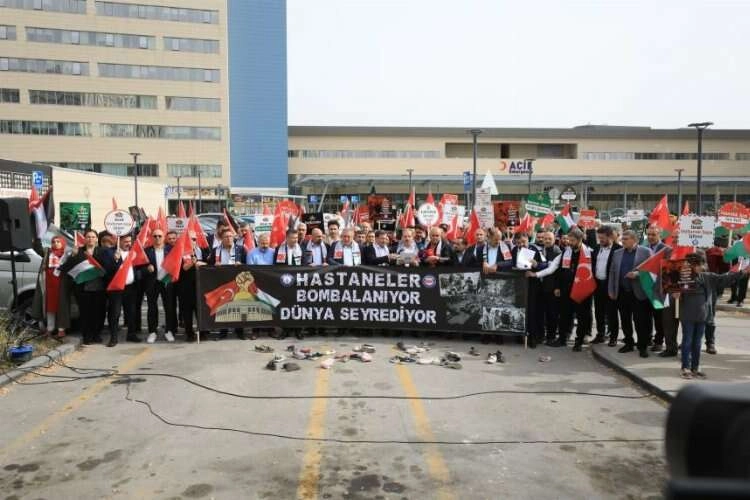 Sağlık-Sen, İsrail’in Filistin’e saldırılarına tepki için 81 ilde eş zamanlı basın açıklamaları gerçekleştirdi. Ankara Bilkent Şehir Hastanesi önünde bir basın açıklaması yapan Sağlık-Sen Genel Başkanı Mahmut Faruk Doğan, Gazze’de İsrail’in bombaladığı ve birçok sivil vatandaşın hayatını kaybettiği hastane saldırısına tepki göstererek, yapılan saldırıları kınadı.
