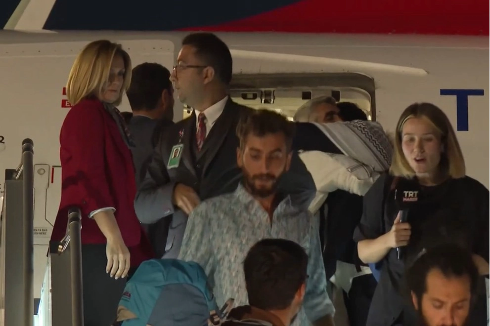 İsrail tarafından uluslararası sularda yapılan operasyonla alıkonulan ve daha sonra serbest bırakılan Küresel Sumud Filosu’nda yer alan 15 Türk aktivist, Türk Hava Yolları’na ait uçakla Türkiye’ye döndü. Amman Kraliçe Aliye Havalimanı’ndan 16.35’te havalanan uçak, 19.00’da İstanbul Havalimanı’na indi. Aktivistler, “Nehirden Denize Özgür Filistin” sloganları atarak VIP salona geçti; aileleri ve çok sayıda vatandaş tarafından çiçeklerle karşılandılar.
