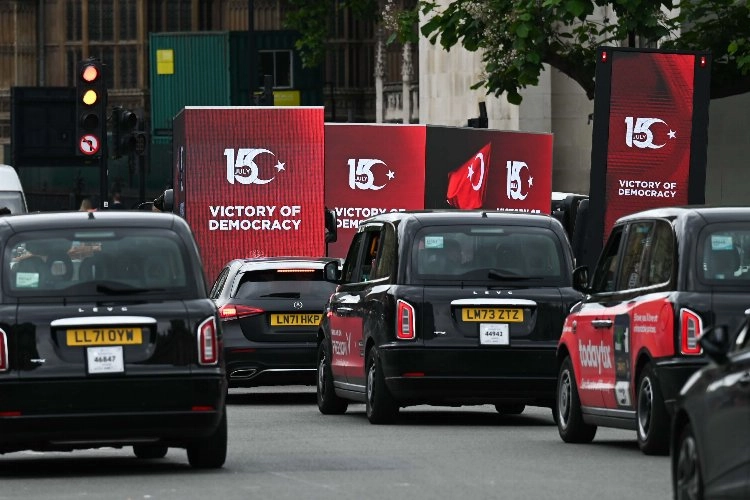İletişim Başkanlığı, 15 Temmuz Demokrasi ve Milli Birlik Günü kapsamında yurtdışı etkinlikleri düzenlemeye devam ediyor. Bu kapsamda Londra'da, Türk halkının 15 Temmuz darbe girişimine karşı sergilediği direniş ve mücadeleyi anlatan görsel ve yazıların yer aldığı LED ekranlı araçlar sokaklarda dolaştı.