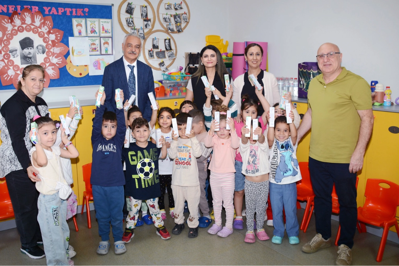 Gündüz Bakımevinde bulunan tüm çocuklara diş macunu hediye edildi.