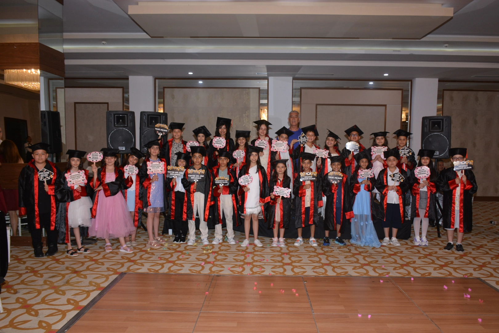 Adana Çukurova’da başarılı eğitimiyle bölgenin en iyi okullarından biri olan Hoca Ahmet Yesevi ilkokulu 4-B sınıfının mezuniyet töreni velilerin yoğun katılımıyla Anemon oteli salonunda coşku dolu anlara sahne oldu.