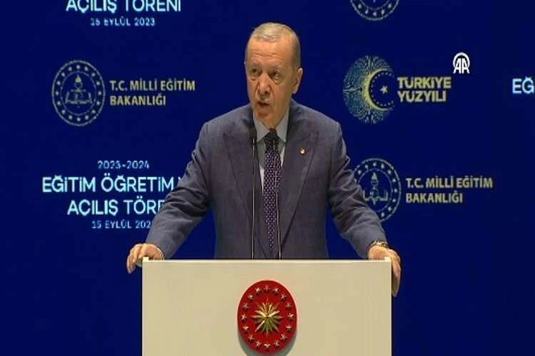 (İLKHABER)- Cumhurbaşkanı Erdoğan: "3 aylık yaz tatilinin ardından pazartesi günü öğrencilerimiz okulları ve öğretmenleri ile buluştu. Kendi evlatlarından ayrı tutmadıkları öğrencileriyle buluşan tüm öğretmenlerimize buradan selam gönderiyorum. "2002’de göreve geldiğimizde derslik sayımız 343 bindi bugün bu sayı neredeyse iki katına 620 bine çıktı"