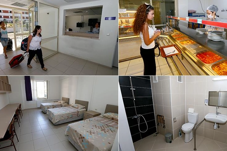 3. Tip: 2-4 kişilik odalar, çalışma masası, bazı yurtlarda buzdolabı ve kitaplık; banyo ve tuvalet ortak kullanım.