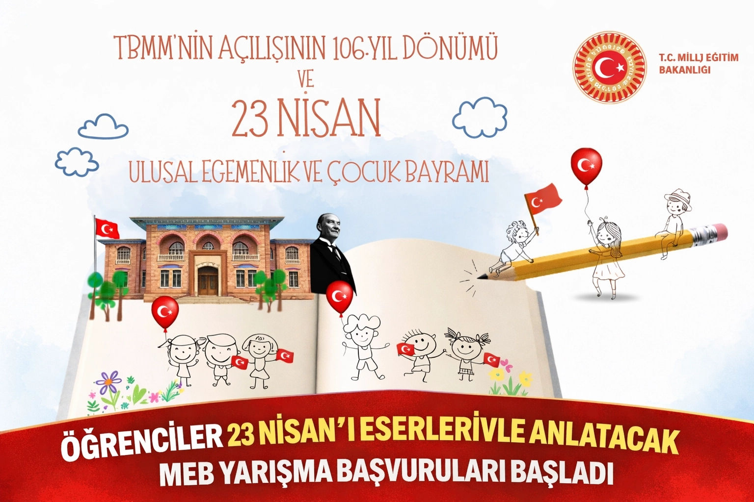 Millî Eğitim Bakanlığı tarafından, Türkiye Büyük Millet Meclisi’nin 106’ncı açılış yıl dönümü ile 23 Nisan Ulusal Egemenlik ve Çocuk Bayramı etkinlikleri kapsamında öğrencilere yönelik yarışma düzenlendi. Resmî ilkokul, ortaokul ve imam hatip ortaokulu öğrencilerinin katılabileceği yarışma için başvurular alınmaya başlandı.