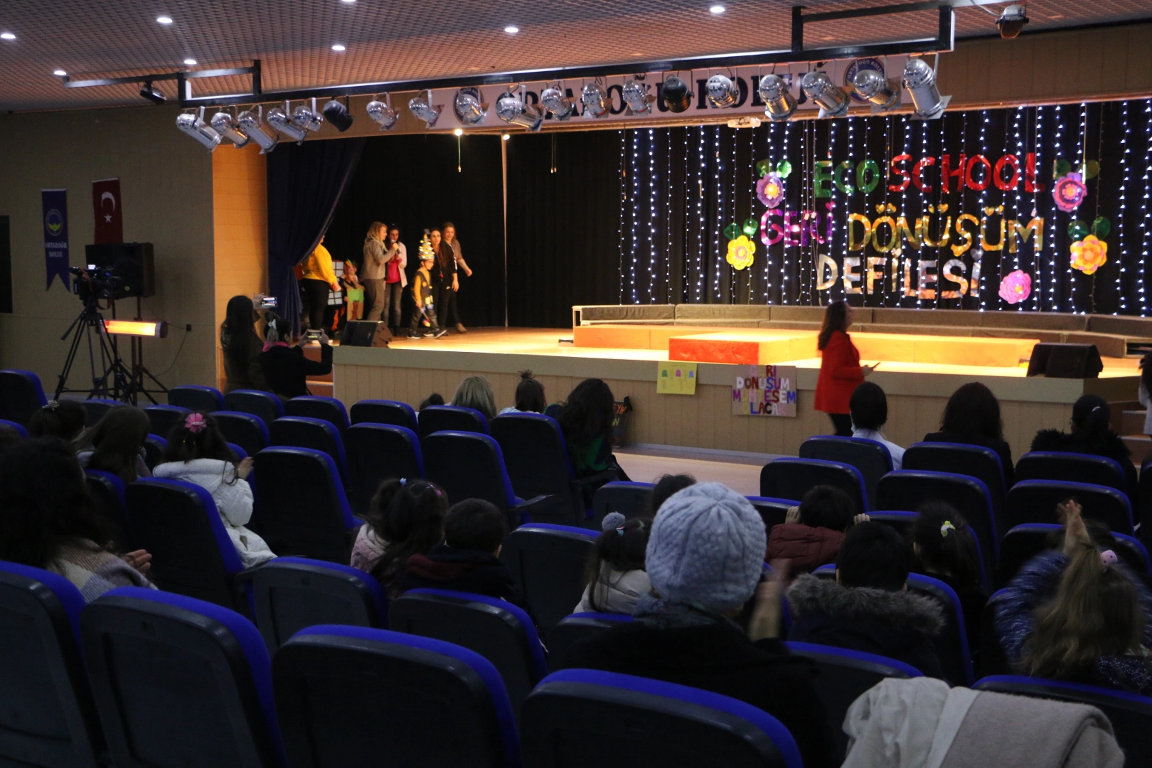 Defilede öğrenciler hem evlerden hem de okuldan topladıkları atık karton, plastik malzemeler ve poşetlerden öğretmen ve velilerin de yardımı ile yaptıkları kostümleri giydi. Süpermen, Batman, astronot, prenses gibi birçok kostümle podyuma çıkan öğrencilerin defilesi hayranlıkla izlendi. 181 öğrencinin yer aldığı etkinlikte atıkların dönüşümüne dikkat çekildi.