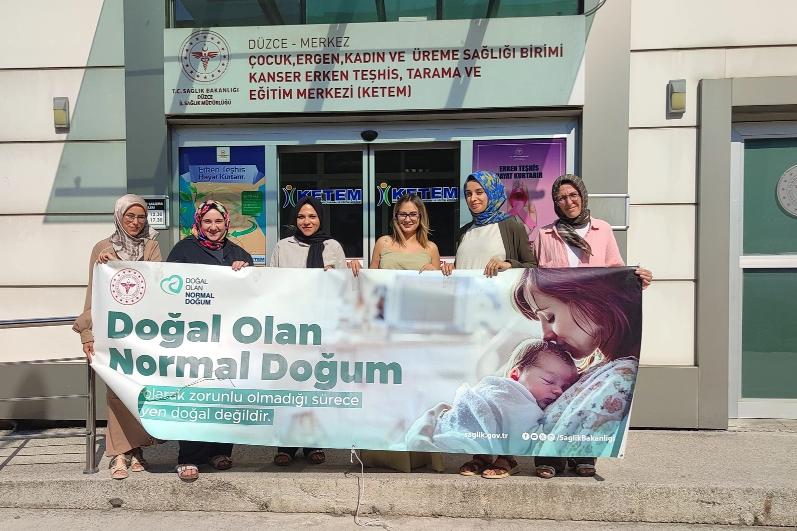 Düzce Sağlık Müdürlüğü Merkez Toplum Sağlığı Merkezi, Normal Doğum Eylem Planı kapsamında anne ve anne adaylarına yönelik “Doğal Olan Normal Doğum” başlıklı farkındalık etkinliği düzenledi. Gebe Okulu Koordinatörü Ebe Meliha Şanal’ın rehberliğinde gerçekleştirilen etkinlikte, normal doğumun önemi, anne ve bebek üzerindeki olumlu etkileri, anne sütü, gebelikte beslenme, doğum süreci ve ağrısı ile baş etme yöntemleri, doğum çantası hazırlığı, yenidoğan taramaları ve yenidoğan bakımı gibi birçok konuda bilgilendirme yapıldı. Katılımcı anne ve anne adaylarına bilgilendirici broşürler de dağıtılarak, doğuma ve doğum sonrasına dair bilinç düzeylerinin artırılması hedeflendi.