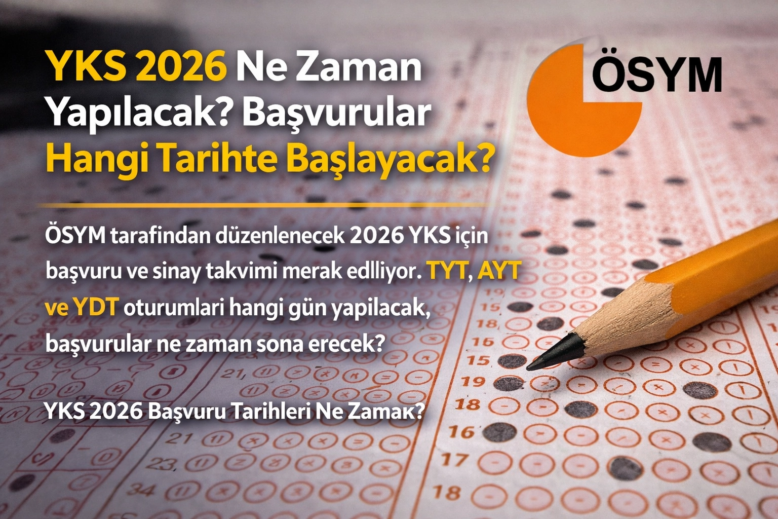 ÖSYM tarafından düzenlenen 2026 Yükseköğretim Kurumları Sınavı (YKS) için başvuru ve sınav takvimi netleşti. Milyonlarca üniversite adayının katılacağı sınav öncesinde gözler başvuru sürecine ve TYT, AYT, YDT oturumlarının yapılacağı tarihlere çevrildi. Üniversite hayali kuran adaylar, “YKS 2026 başvuruları ne zaman başlayacak?”, “TYT, AYT ve YDT hangi tarihte yapılacak?” sorularına yanıt arıyor.ÖSYM’nin açıkladığı 2026 sınav takvimine göre YKS başvuru süreci şubat ayında başlayacak, sınavlar ise Haziran ayında iki gün boyunca uygulanacak. İşte YKS 2026’ya dair merak edilen tüm detaylar…